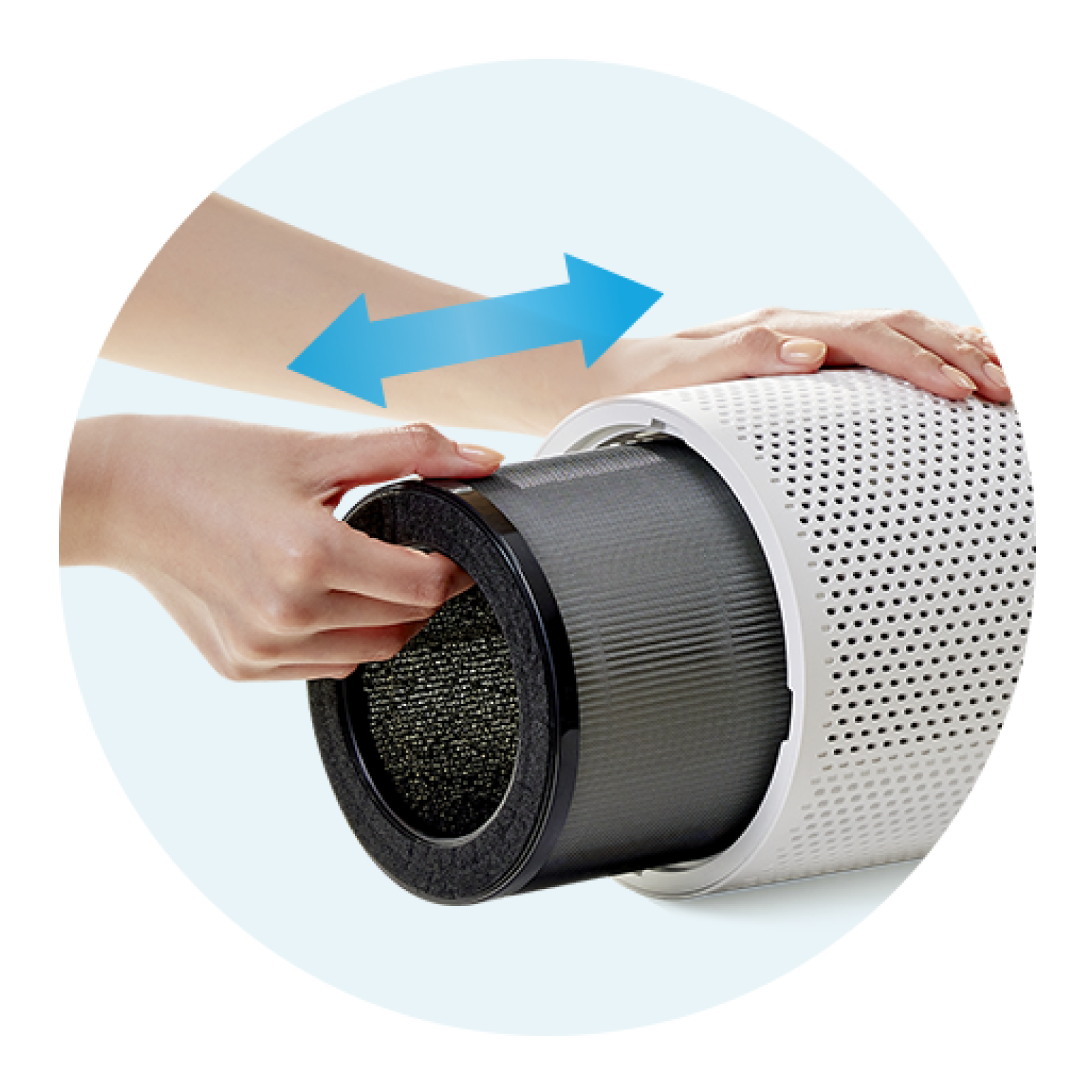 - Der Airmega 50 Filter ist ein kombinierter Vorfilter, HyperCaptive-Filter und Deodorierungsfilter – alles in einem praktischen Paket.